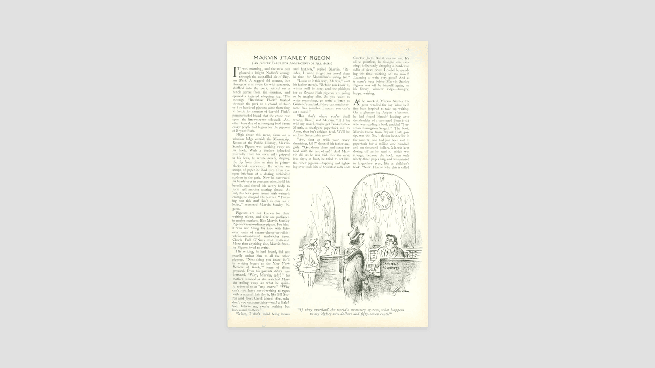 Marvin Stanley Pigeon – A parody of Jonathan Livingston Seagull by oreography Related: Worst experience with a book you’ve read/audiobooked? Why do some Readers Mark “regular” books they read like they are working on a science paper? The Girl Who Played With Fire was so disappointing I threw the book away 38 pages in. Should I continue with the Illuminatus trilogy? Distinguishing between male/female authors based on style